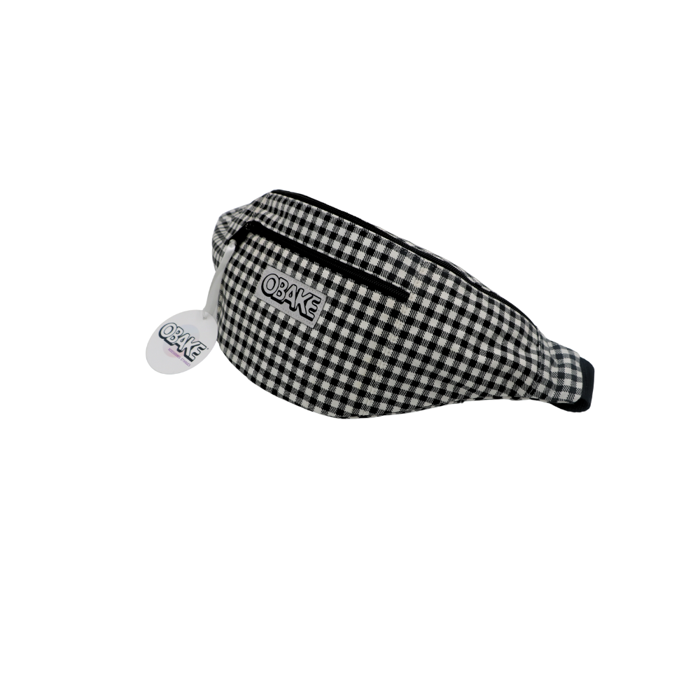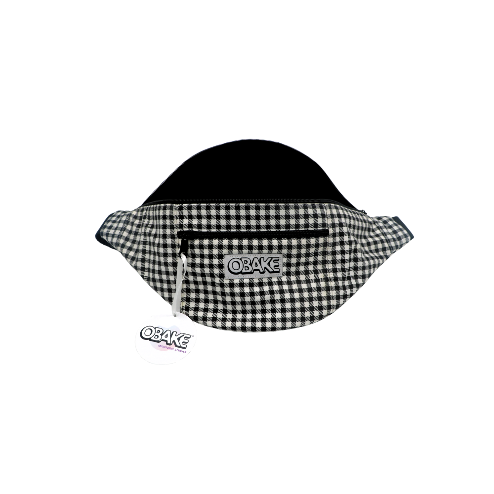 Banane imprimé vichy noir et blanc. Sangle noire réglable, fermeture éclair noire et doublure intérieure noire.