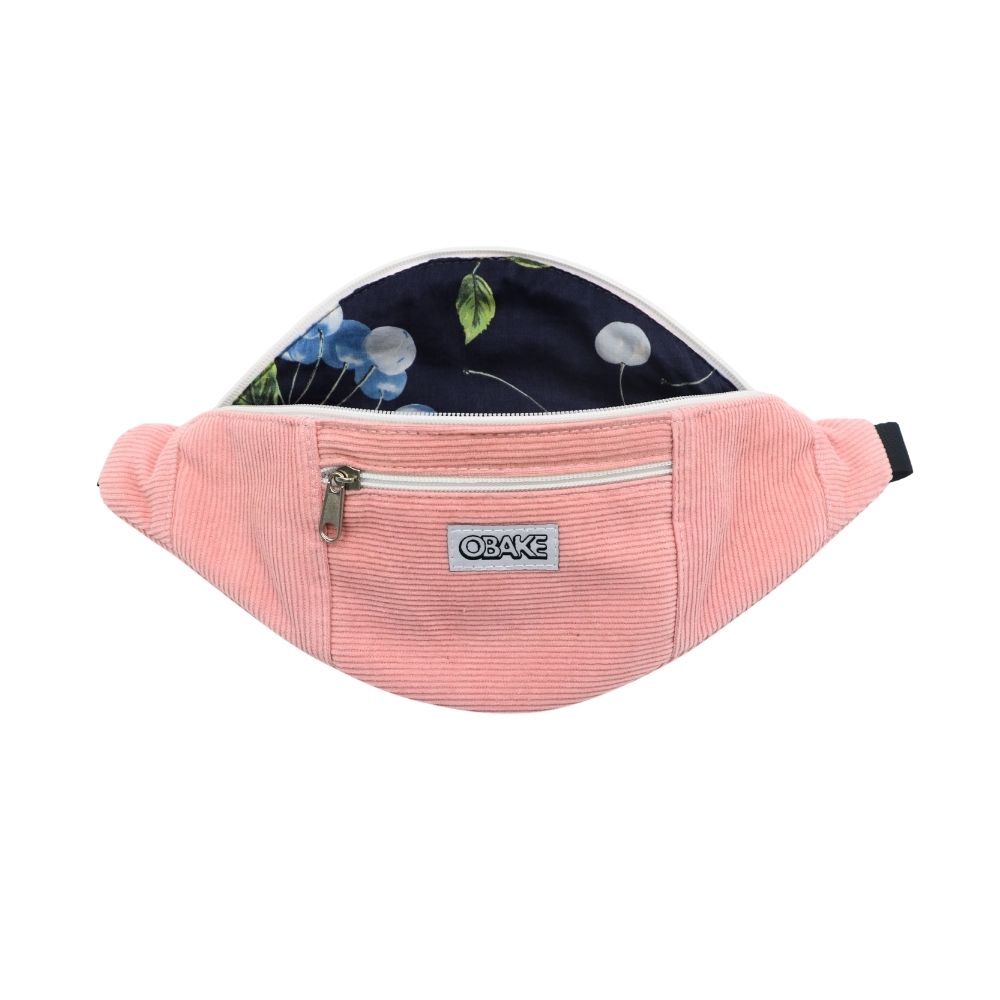 Le mini sac banane « Sakura » est une pièce douce et poétique, conçue pour les enfants dès 5-6 ans ou pour être portée à la taille par une femme. En velours côtelé rose bébé, il apporte une touche de douceur, tandis que le zip blanc et la sangle fine noire ajoutent une élégance contrastée. La doublure intérieure bleu marine, avec des cerises bleues crée une surprise colorée à l’ouverture,