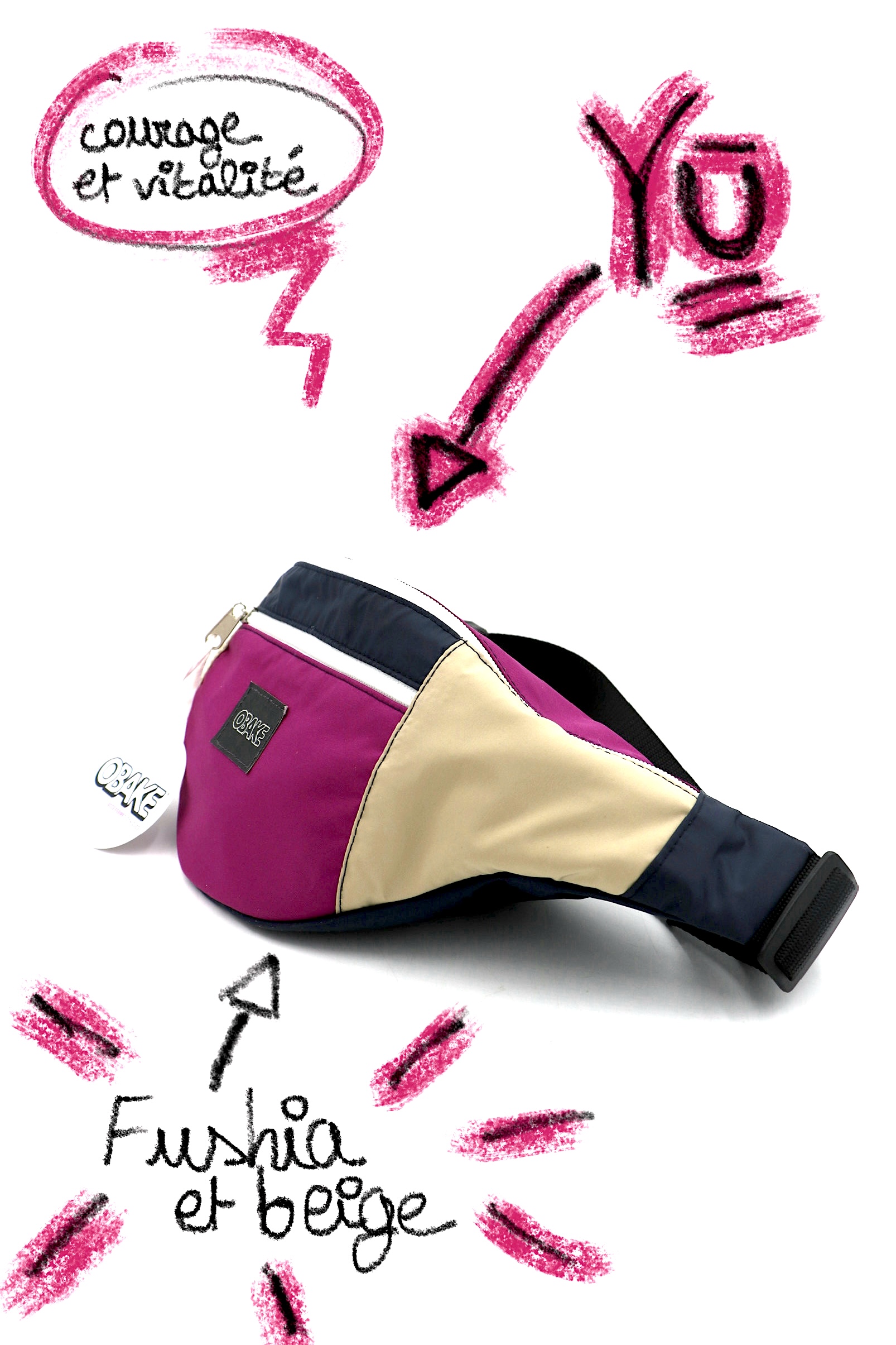 Sac Banane YŪ Upcyclé Imperméable Fushia et Beige | OBAKE