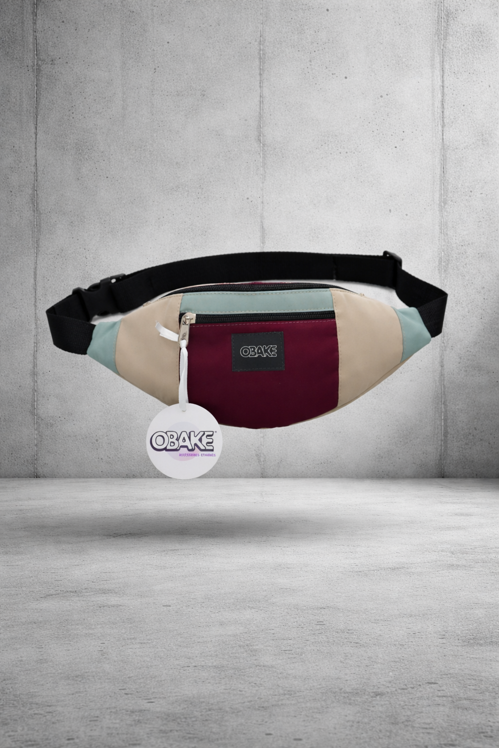 Sacoche Banane Mini ASOB Upcyclé Bordeaux, Bleu Ciel et Beige | OBAKE